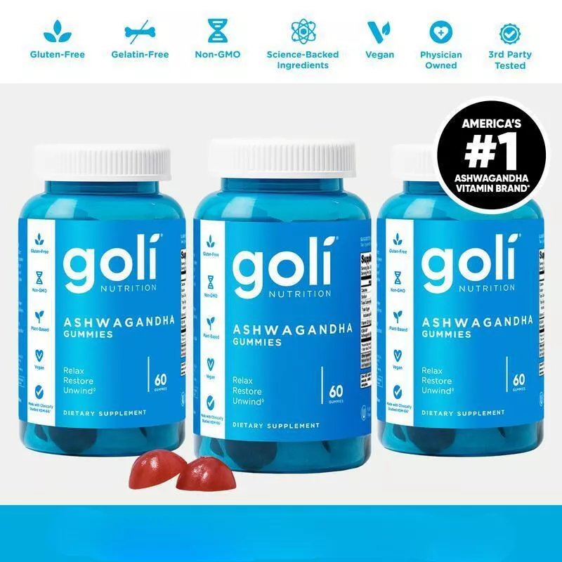 Support your wellness with 3 bottles of Goli Ashwagandha & Vitamin D Gummies. Made with KSM-66® Ashwagandha, the world’s best Ashwagandha, these gummies help reduce stress, improve sleep quality, enhance memory, and support immune health. Deliciously flavored with mixed berries, they’re vegan, plant-based, and free from gluten, gelatin, and GMOs.